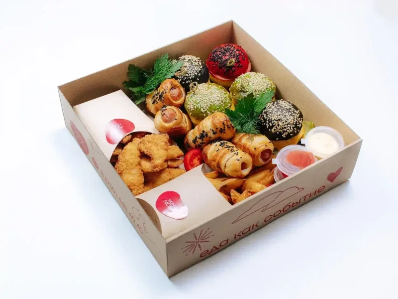 ❤️Бургер с говяжьей котлетой и овощами состав: тесто дрожжевое (масло сливочное, вода питьевая, мука пшеничная, дрожжи, сахар, соль, молоко питьевое, яйцо куриное), котлета говяжья (куриное бедро, говядина, батон нарезной, лук, соль, перец, свинина карбонат, молоко питьевое, вода питьевая, масло растительное), сыр моцарелла, огурцы маринованные, томаты свежие, салат "Айсберг", кетчуп, майонез, соус барбекю, соус чили сладкий, горчица зернистая. ❤️Сосиска в тесте состав: тесто слоеное дрожжевое, сосиски, кунжут, яйцо куриное, ❤️Картофельные дольки состав: картофельные дольки, масло фритюрное, кетчуп, соус сырный, соль, микрозелень ❤️Нагетсы куриные состав:филе куриное, сухари панко, мука пшеничная, соль, яйцо куриное, масло растительное.